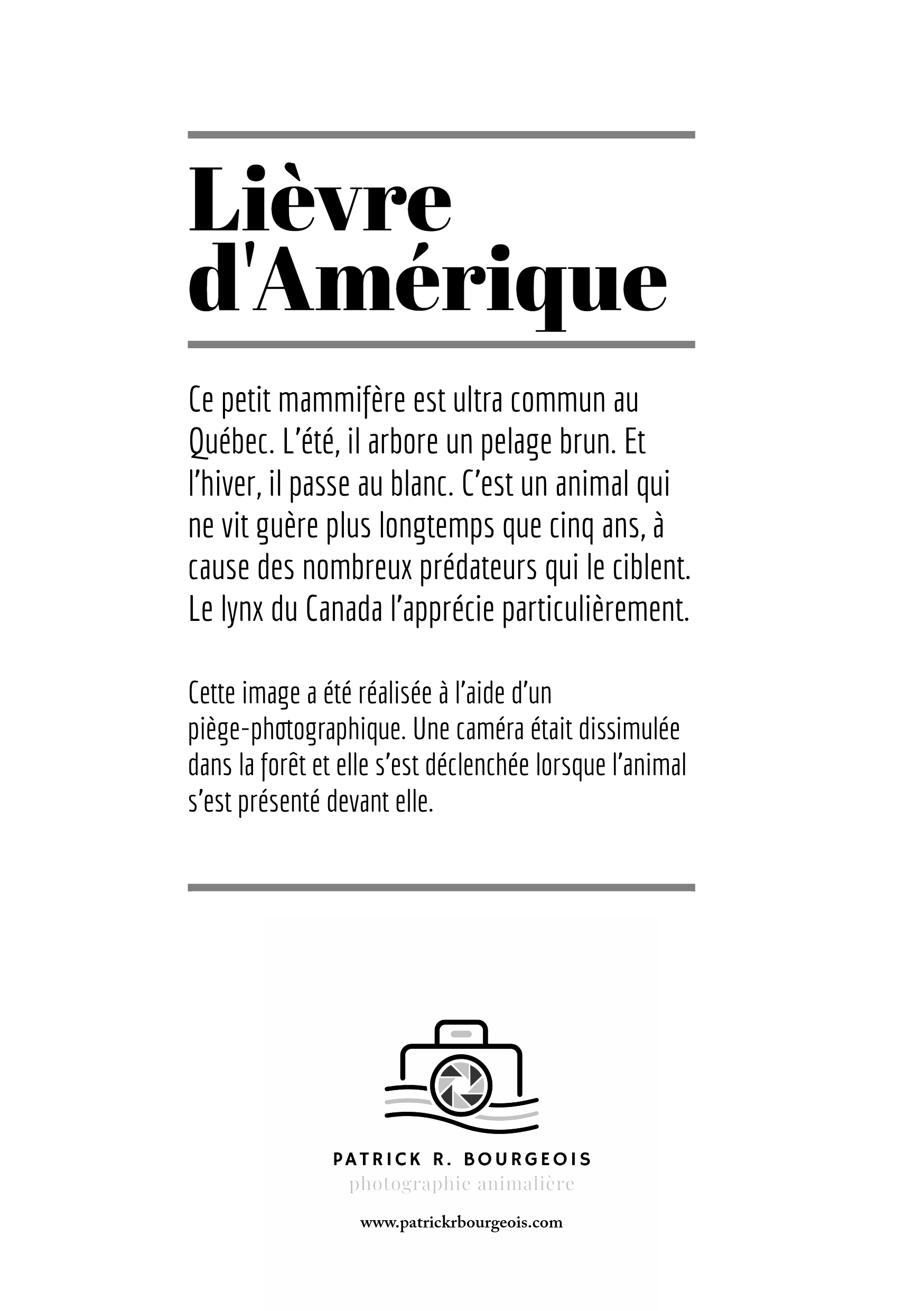 L'arrière de la carte comporte des informations concernant cette espèce du Québec.